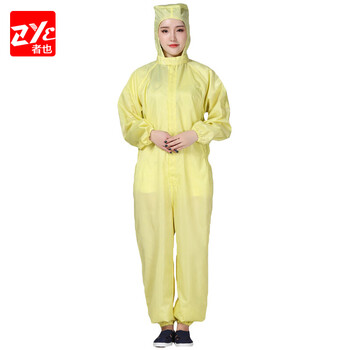者也(ZYE)防静电服连帽连体男女实验室GMP无尘工作服 连帽黄色 M码