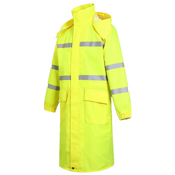 者也(ZYE)长款雨衣 成人男巡逻徒步防汛急救物业保安双层防水加厚单人反光雨衣雨披可印字031 荧光黄 XL码