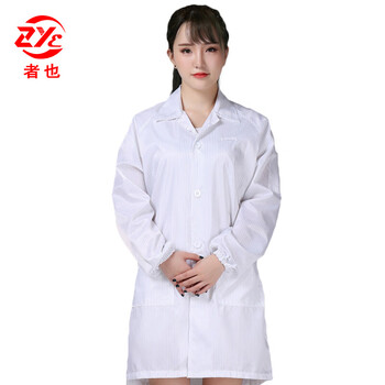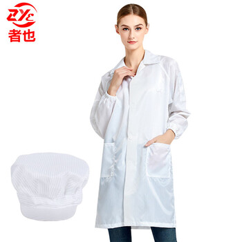 者也 防静电条纹大褂配大工帽实验室食品工厂车间电子厂无尘洁净防护工作衣 白色 M码