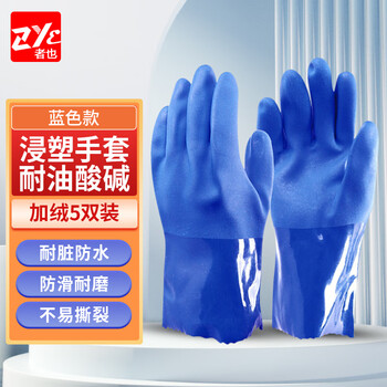 者也(ZYE)耐油耐酸碱浸塑手套防滑防水机械化工水产农作劳保手套 全胶浸胶加绒手套5双