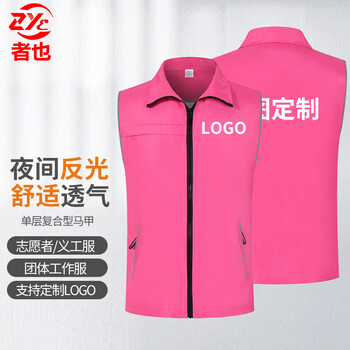 者也 志愿者马甲义工工作服超市快递广告衫宣传马甲可定制logo 双层网透型【蓝色马甲】 XL码