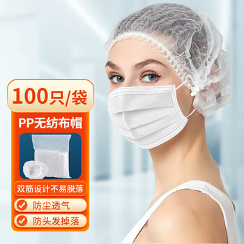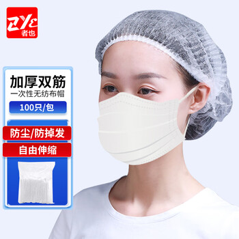 者也 一次性无纺布条形帽 车间防尘网帽厨师防油烟蘑菇帽 白色19寸